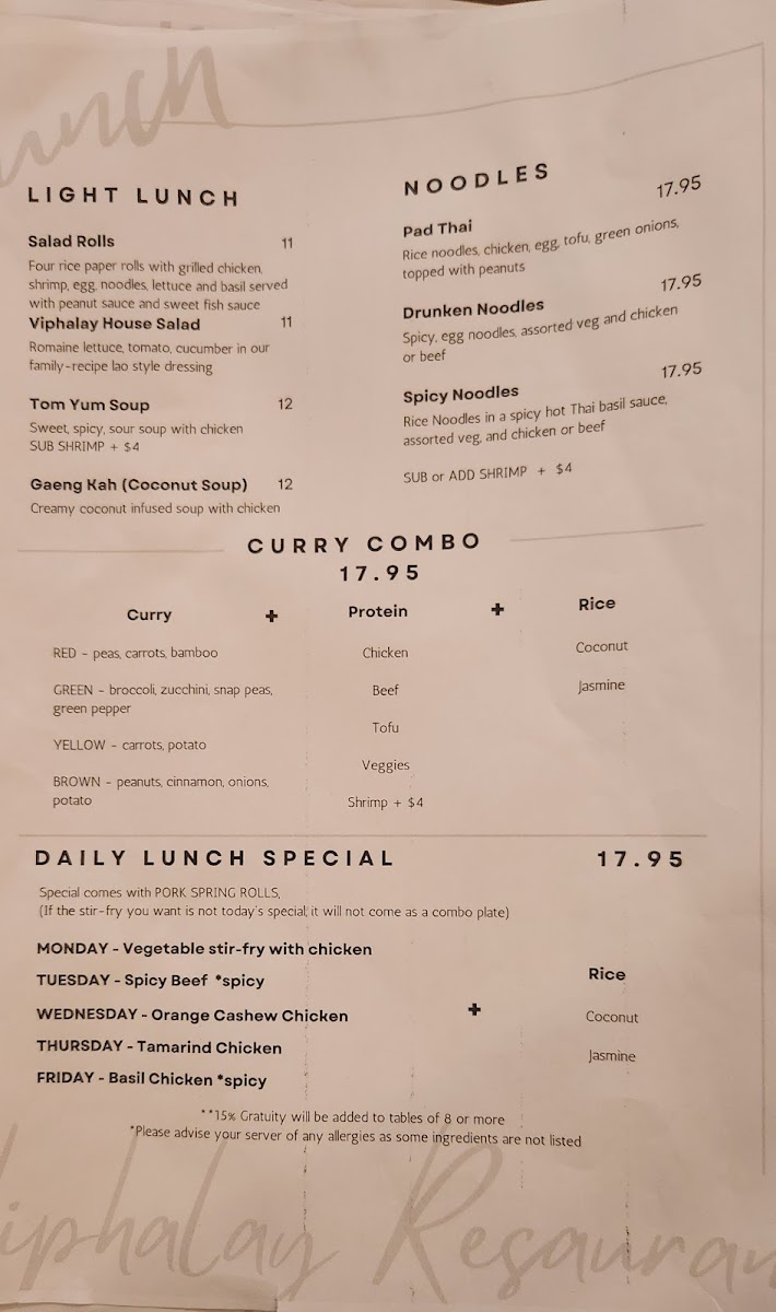 Overall, Viphalay Laos & Thai Restaurant stands out in Edmonton’s culinary scene, making it a go-to spot for lovers of Thai flavors and those seeking a taste of Lao cuisine. Come experience the vibrant dishes, excellent service, and friendly ambiance, and you may very well find yourself a regular at this local favorite.
