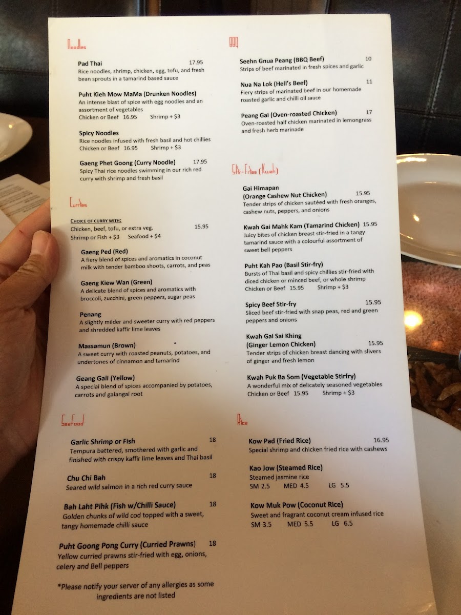 The curries here are exceptional and showcase a complexity of flavors that will leave you longing for more. From the fiery Gaeng Ped to the sweet and aromatic Massaman, priced at CA$27.00 each, there's truly something for everyone. For a milder experience, the Gaeng Kiew Wan with its fresh vegetables is a vibrant option worth trying.